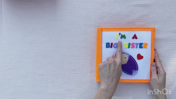 Becoming a sister is a big milestone for a little girl. Let her in on the excitement! Our quiet book “Im a big sister” is a special gift for an older sibling when a baby is born, to help her visualize life with a new baby in the house in the most fun, interactive way.